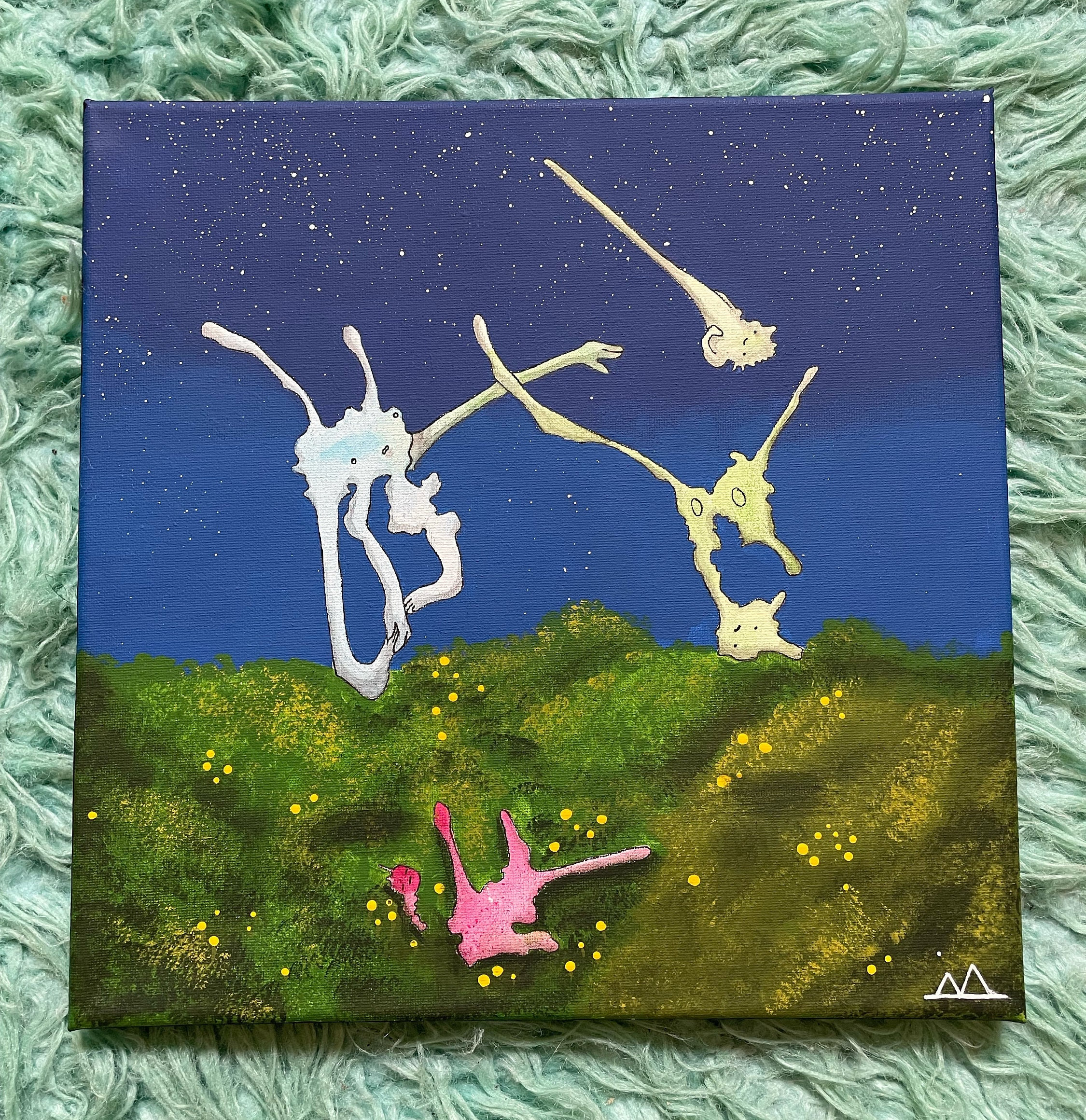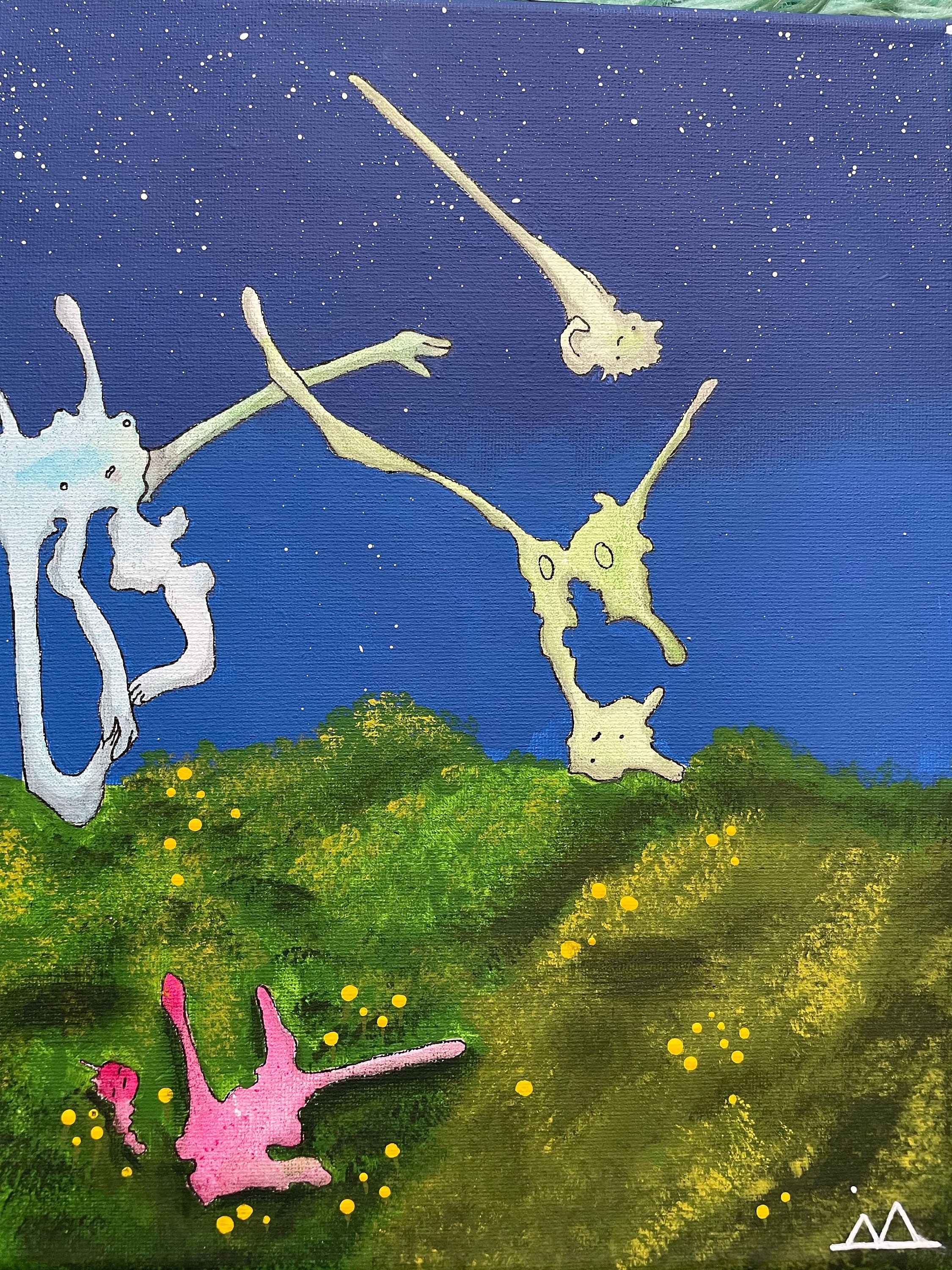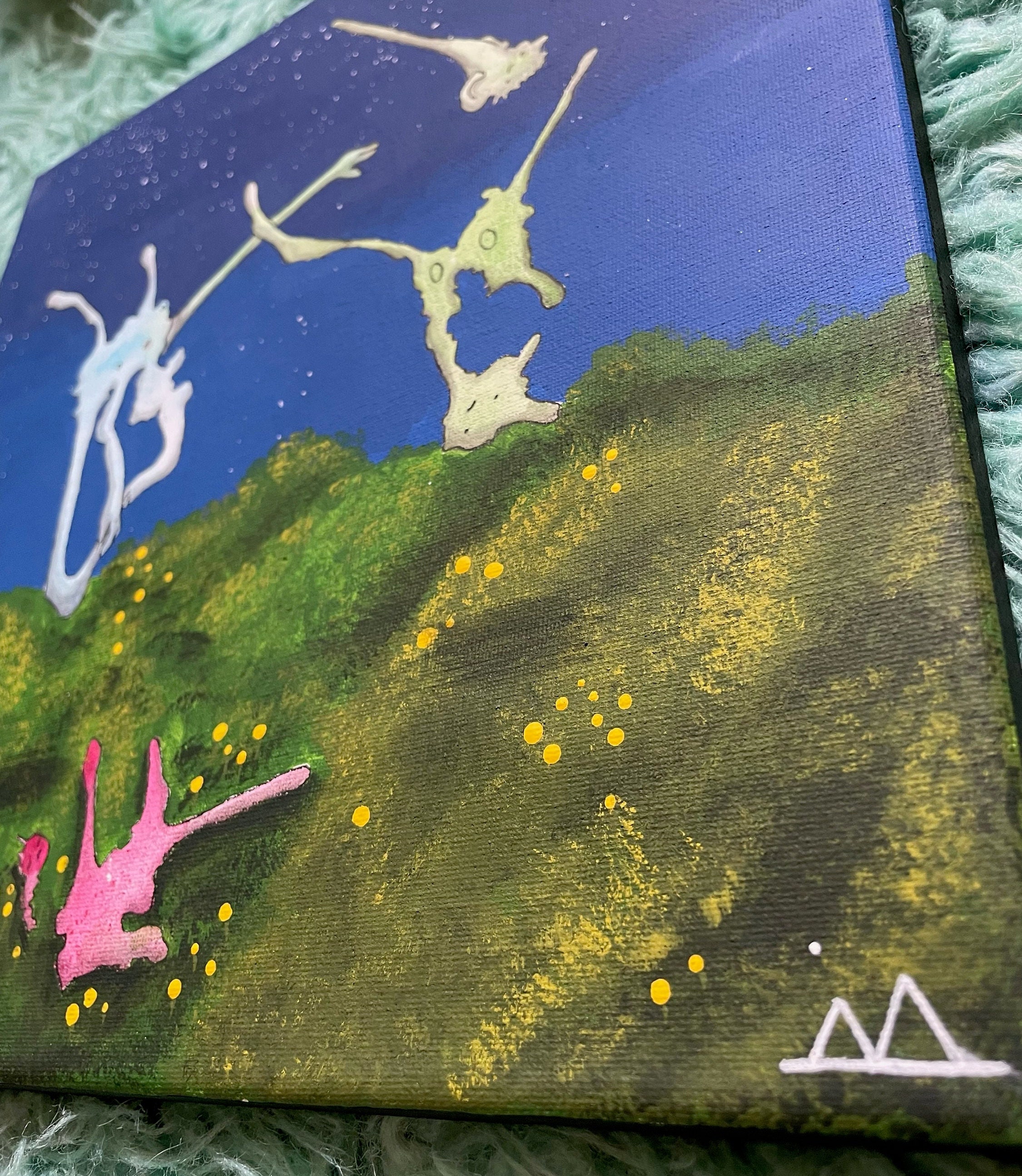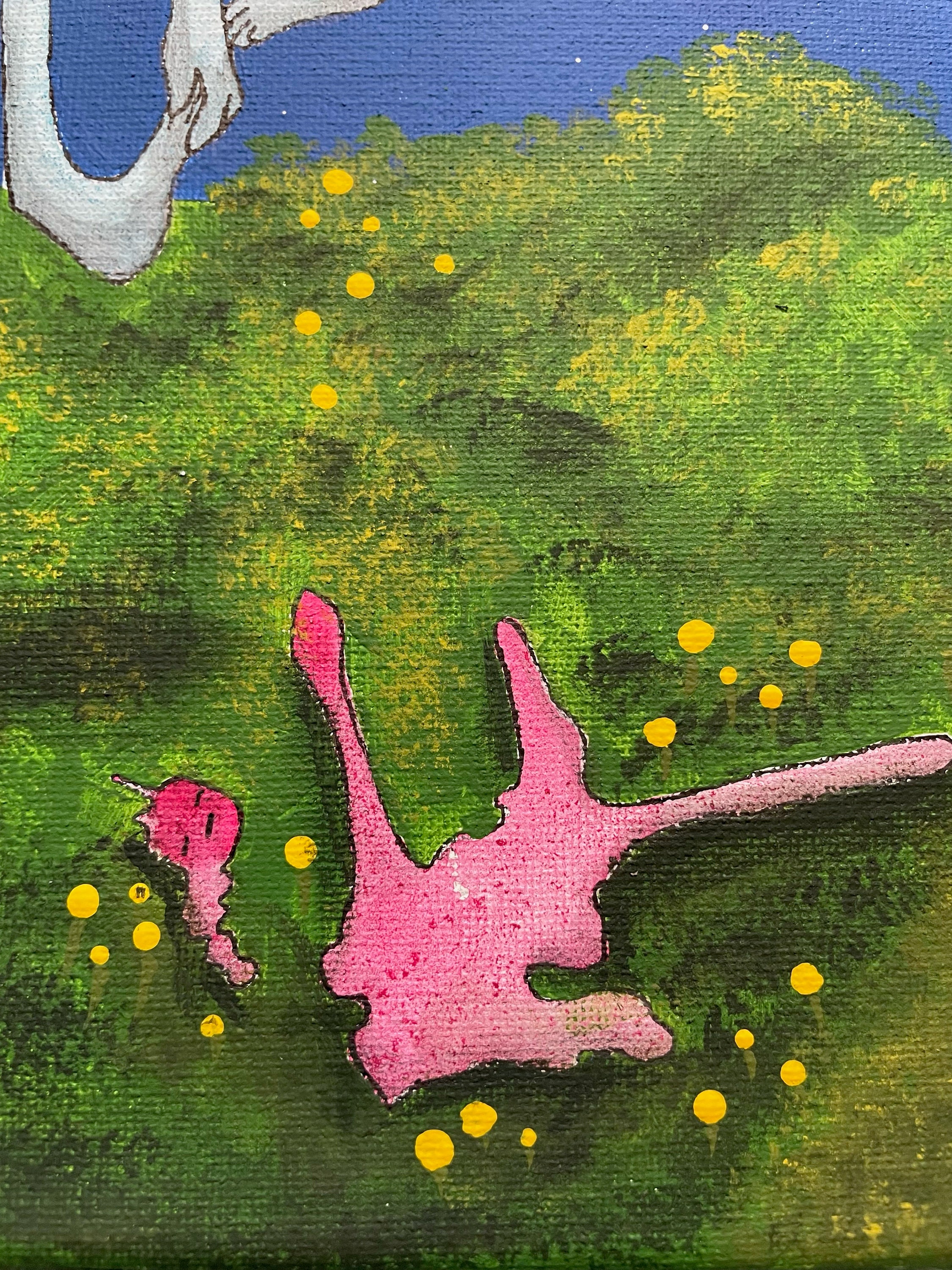 Original painting using watercolor paint, acrylic paint, Micron fine liners, and graphite pencil on stretched canvas.