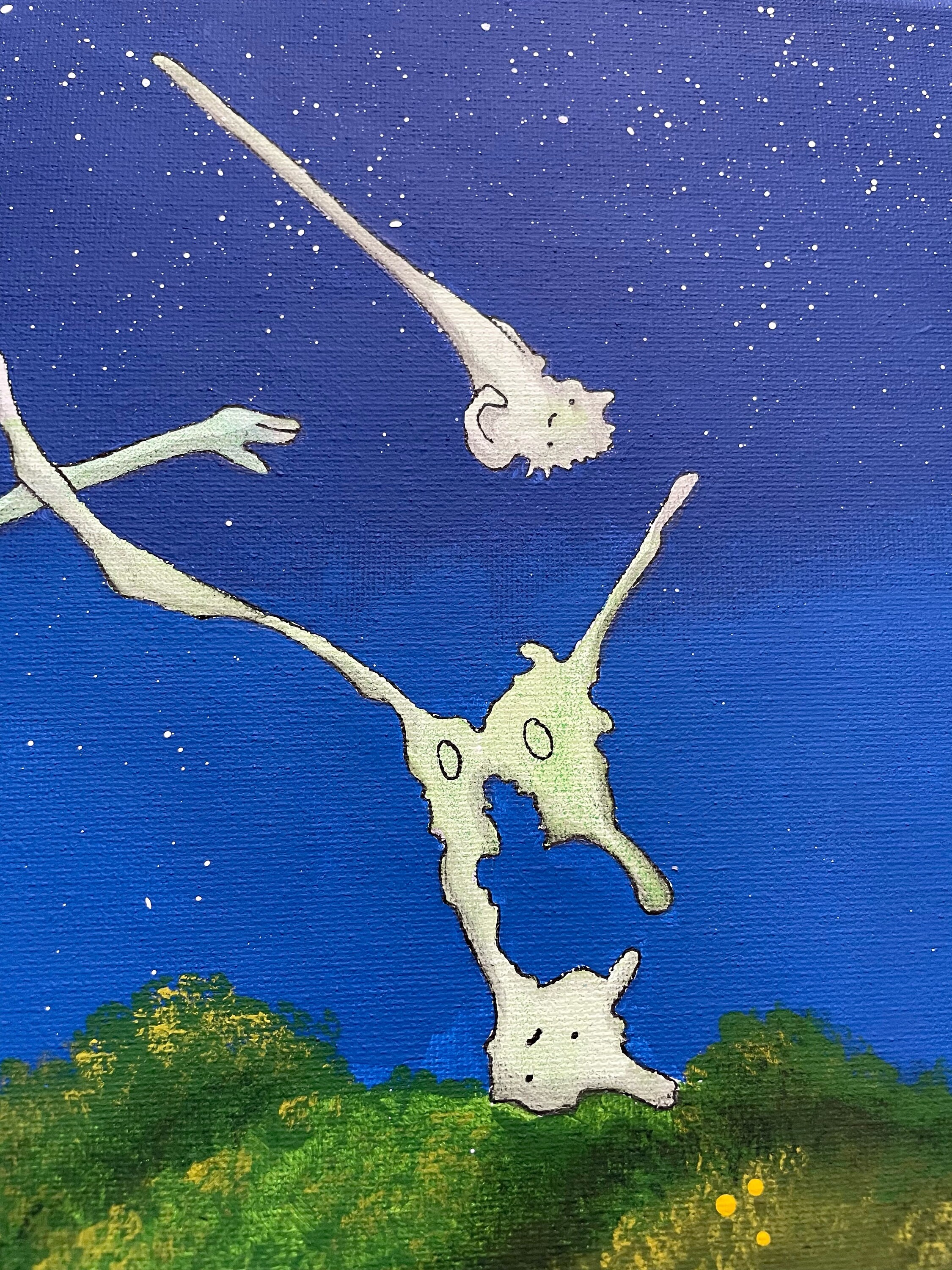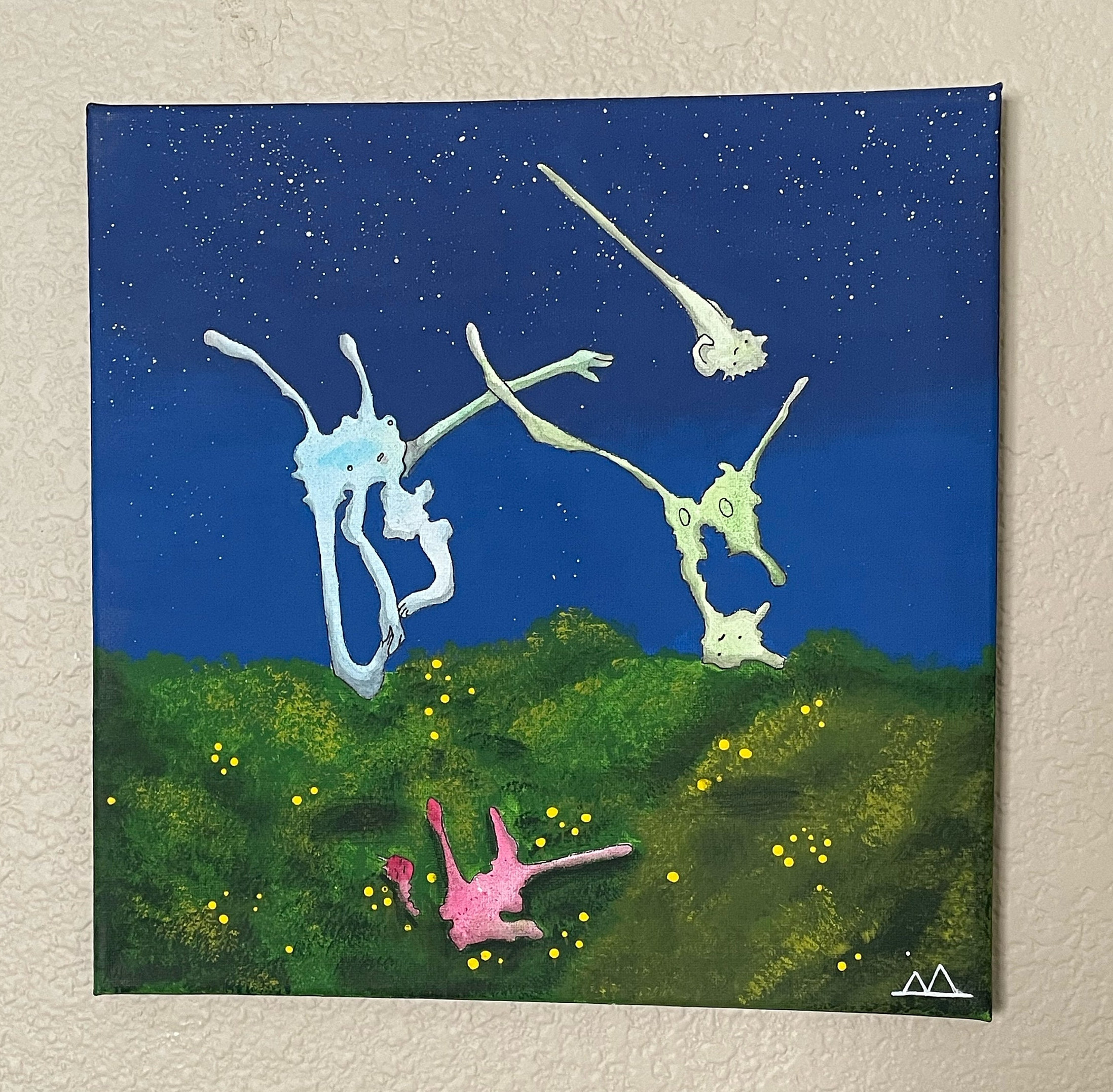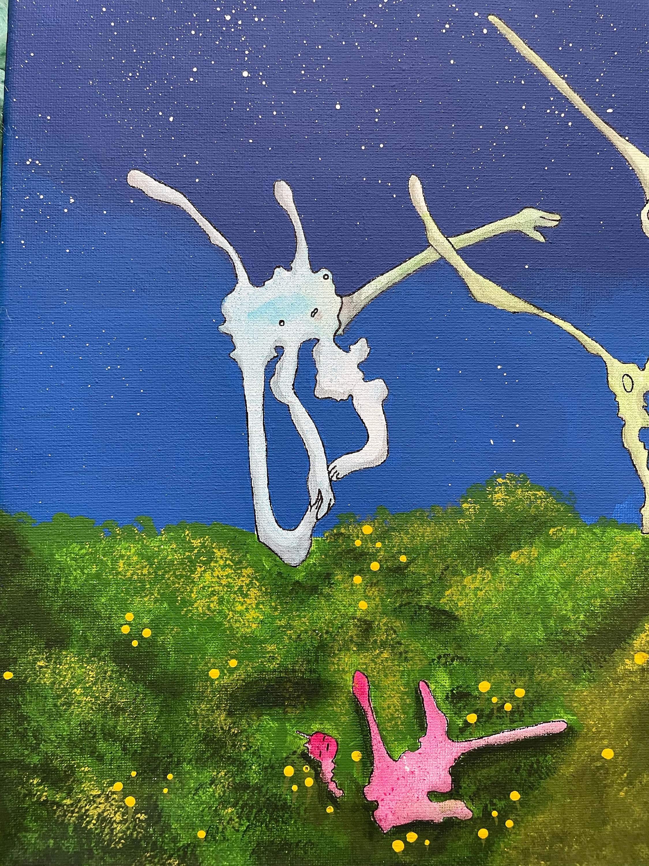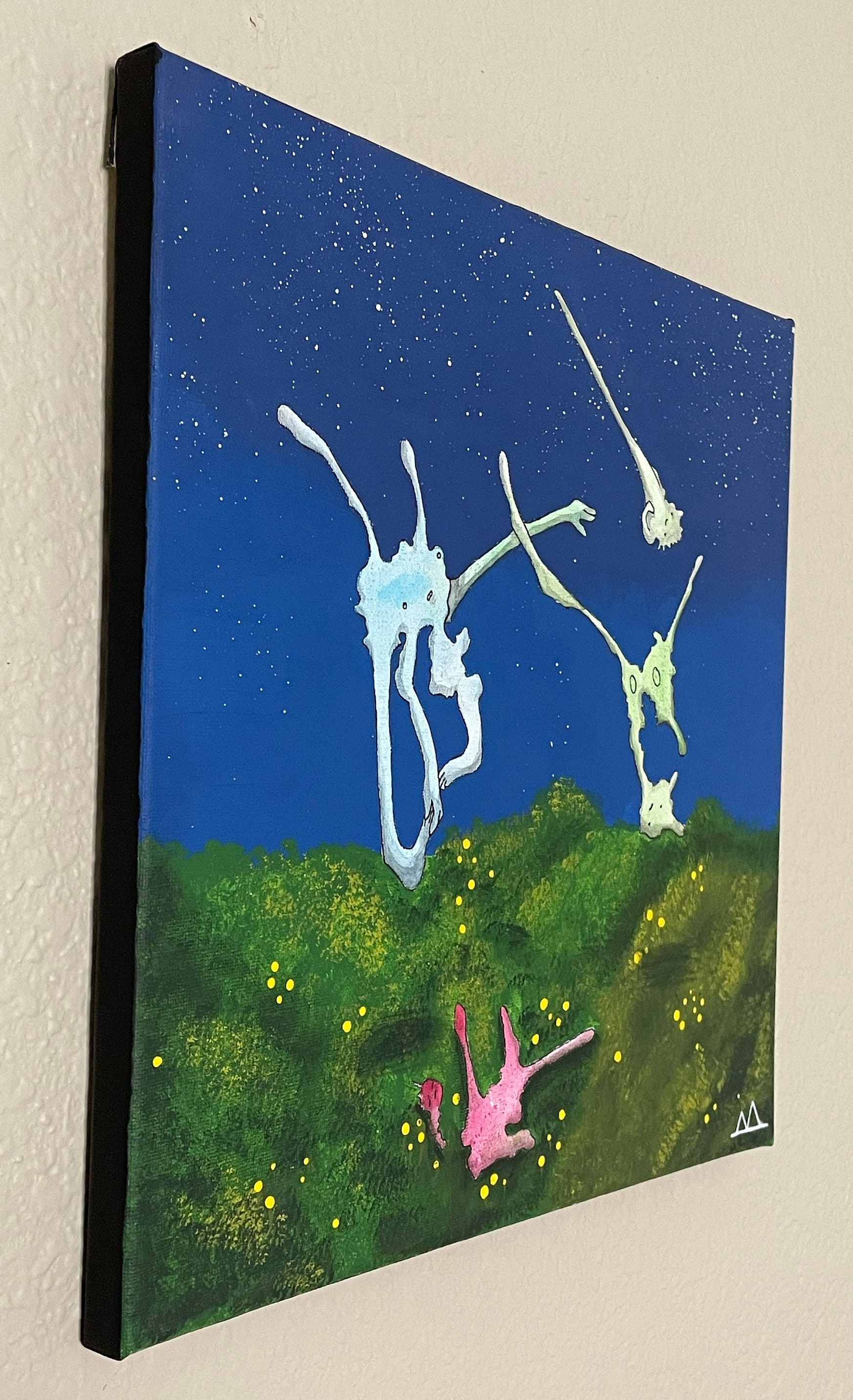 Original painting using watercolor paint, acrylic paint, Micron fine liners, and graphite pencil on stretched canvas.